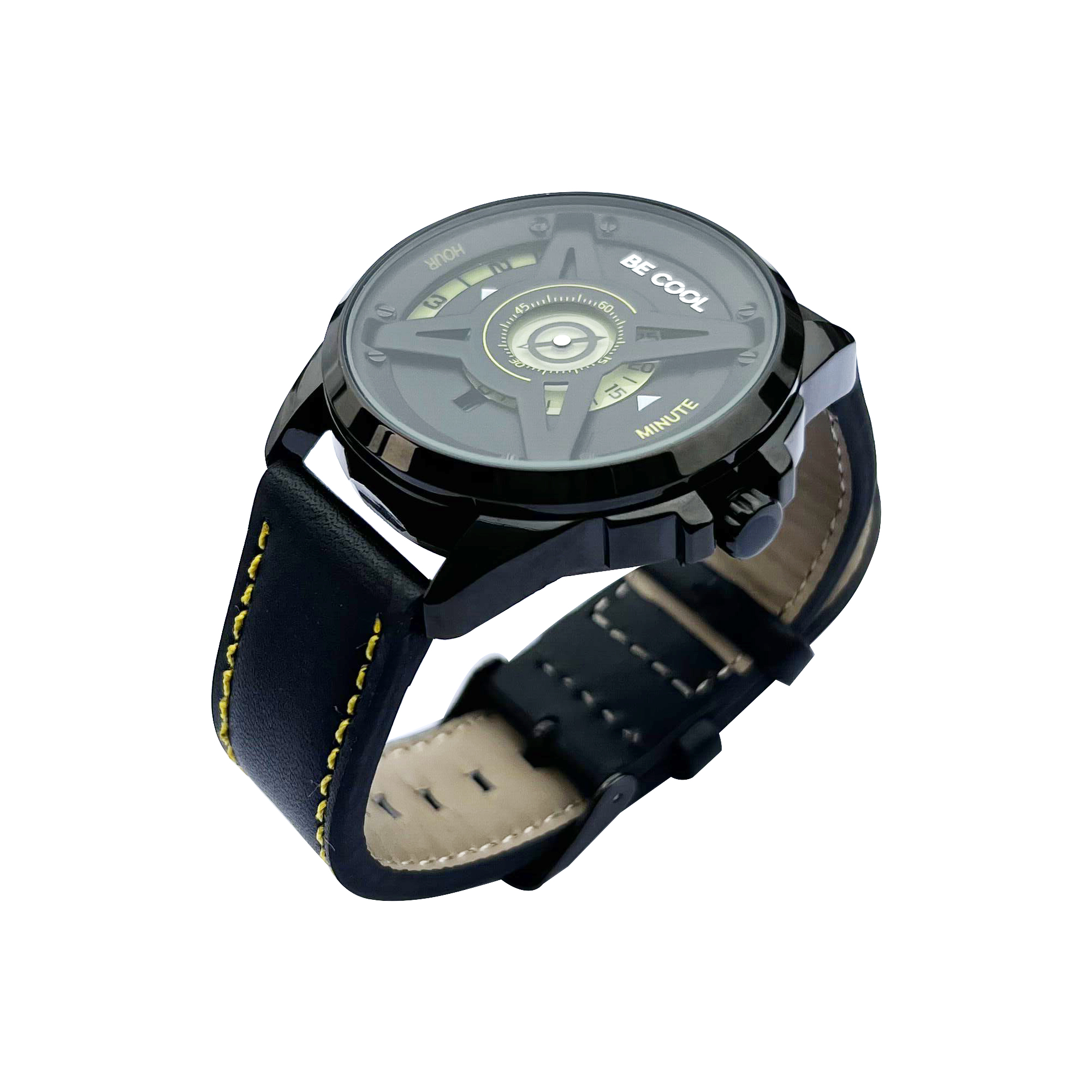 Armbanduhr BLACKOUT | Schwarz mit Lederarmband – BE COOL