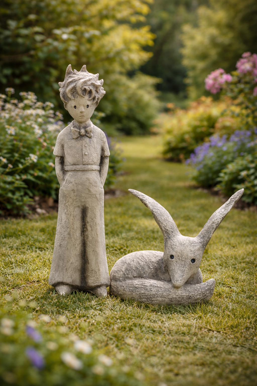 Gartenskulptur Bundle | Kunststein | Der Kleine Prinz & Fuchs – ©Antoine de Saint-Exupéry