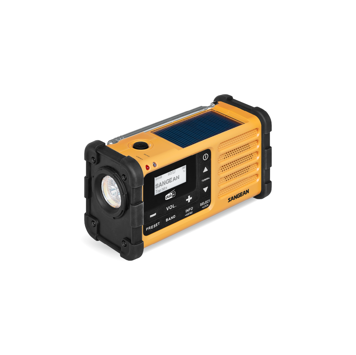 - 3 Ladeoptionen: Handkurbel, USB-C, Solarpanel