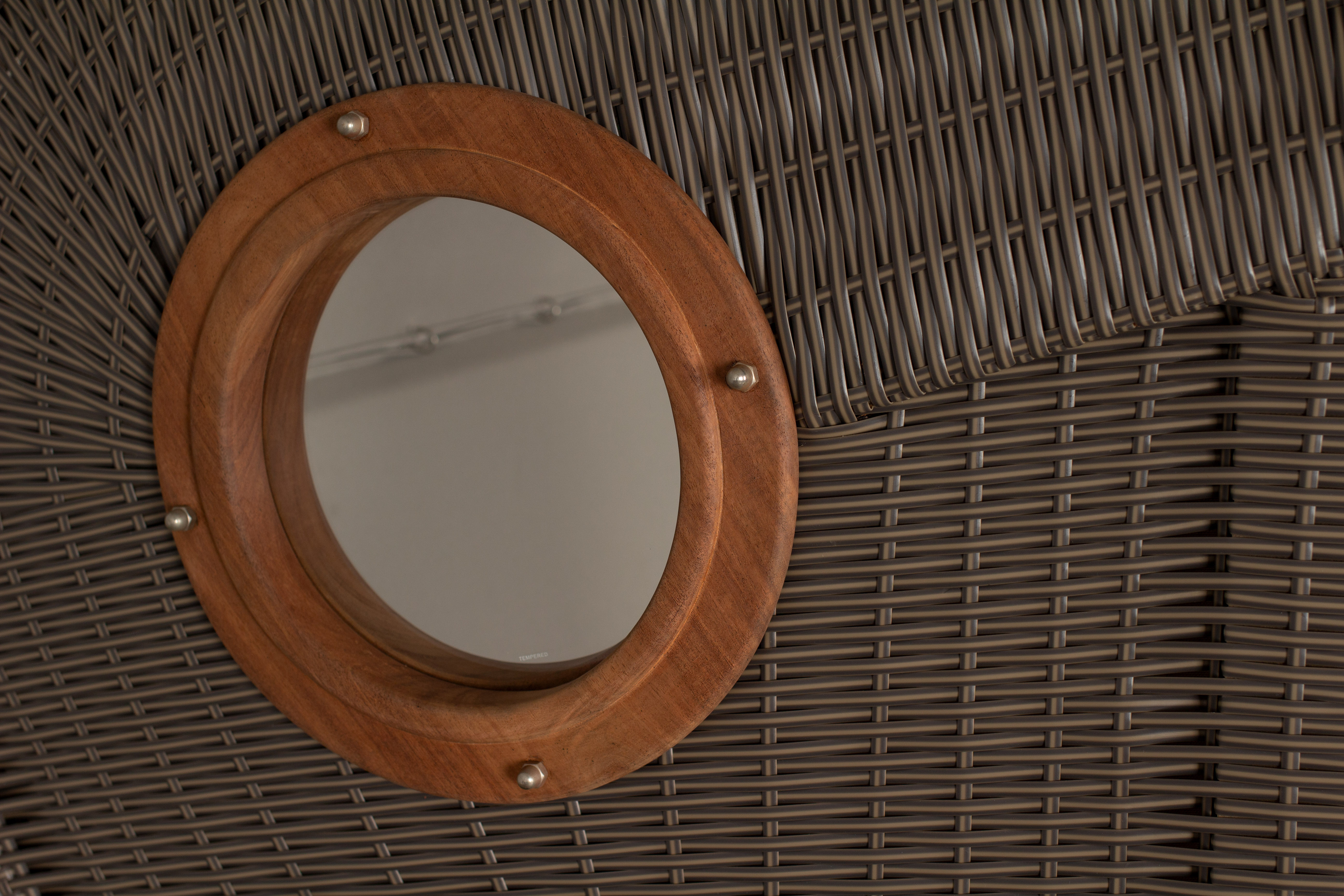 Zwei Bullaugen mit Rahmen aus Akazie lassen Licht herein und geben den klassischen Look.