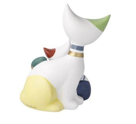 Charmante Katzenfigur aus hochwertigem Biskuitporzellan im typischen Stil von Rosina Wachtmeister. „Macchia e Giro“ zeigt zwei stilisierte Katzen in liebevoller Darstellung, geprägt von sanften Formen und harmonischer Farbgebung.