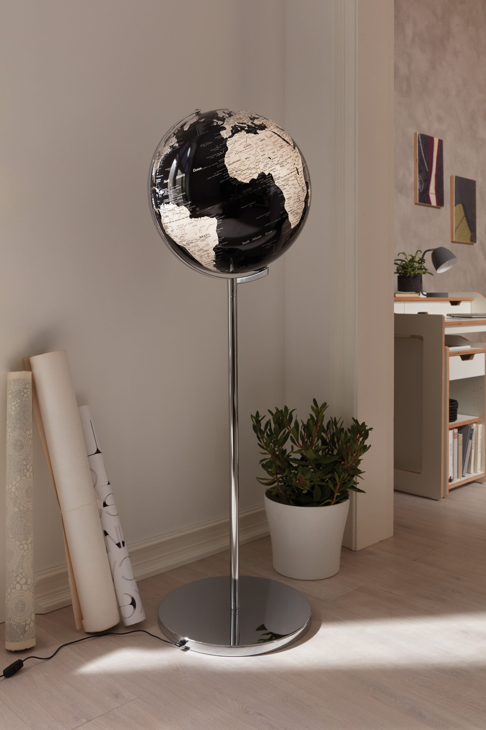 Mit seinem eleganten Design und integrierter LED-Beleuchtung ist der Standglobus SOJUS LIGHT ein beeindruckender Blickfang sowohl für private Wohnräume als auch für Geschäftsumgebungen. Der stabile Fuß, das verchromte Metallgestell und die glänzende Weltkugel mit ihren reliefartig ausgearbeiteten Gebirgen verkörpern höchste Exklusivität.