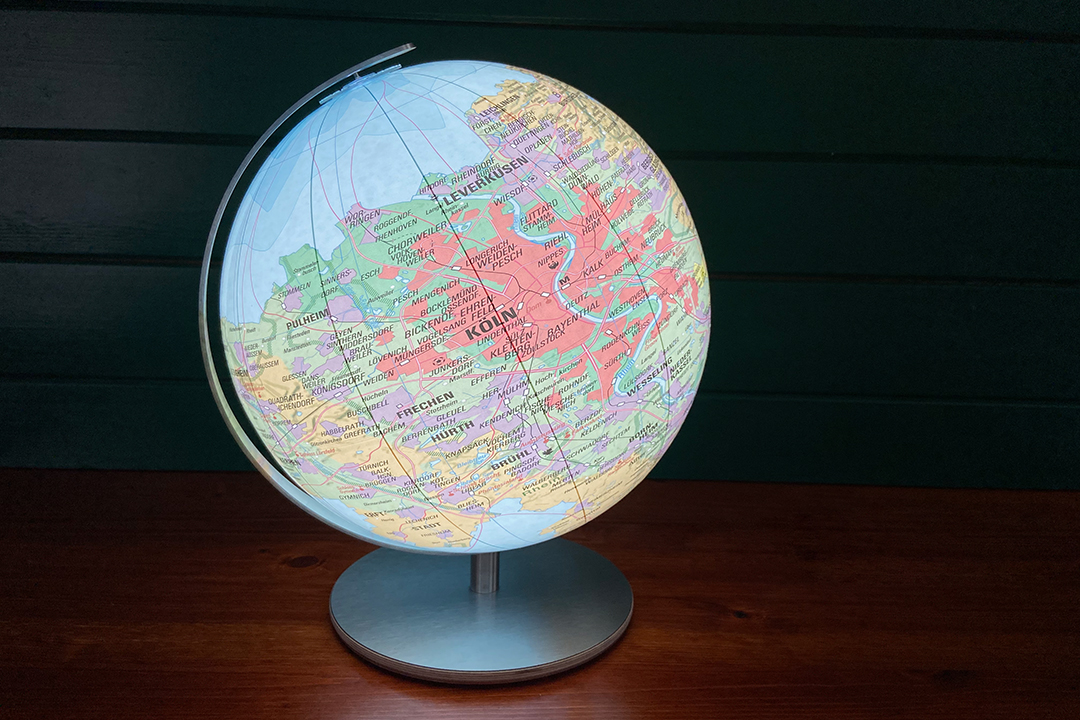 "Jupp“ ist ein Globus der Extraklasse – für alle, die ihrer Heimat ein besonderes Denkmal setzen wollen. Die hochwertige Karte auf der 30 cm großen Acrylglaskugel zeigt die Region Köln-Bonn und das Bergische Land mit beeindruckender Detailtreue: von pulsierenden Städten wie Köln, Bonn und Leverkusen bis hin zu charmanten Orten wie Gummersbach oder Kerpen.
