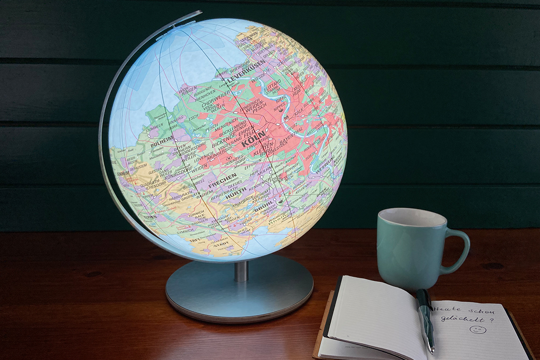 "Jupp“ ist mehr als ein Globus – er ist ein Hingucker mit Heimatgefühl, der auf jedem Schreibtisch, Sideboard oder Empfangstresen glänzt. Auch als Geschenk für Köln-Bonn-Liebhaber ist er ein echtes Highlight.