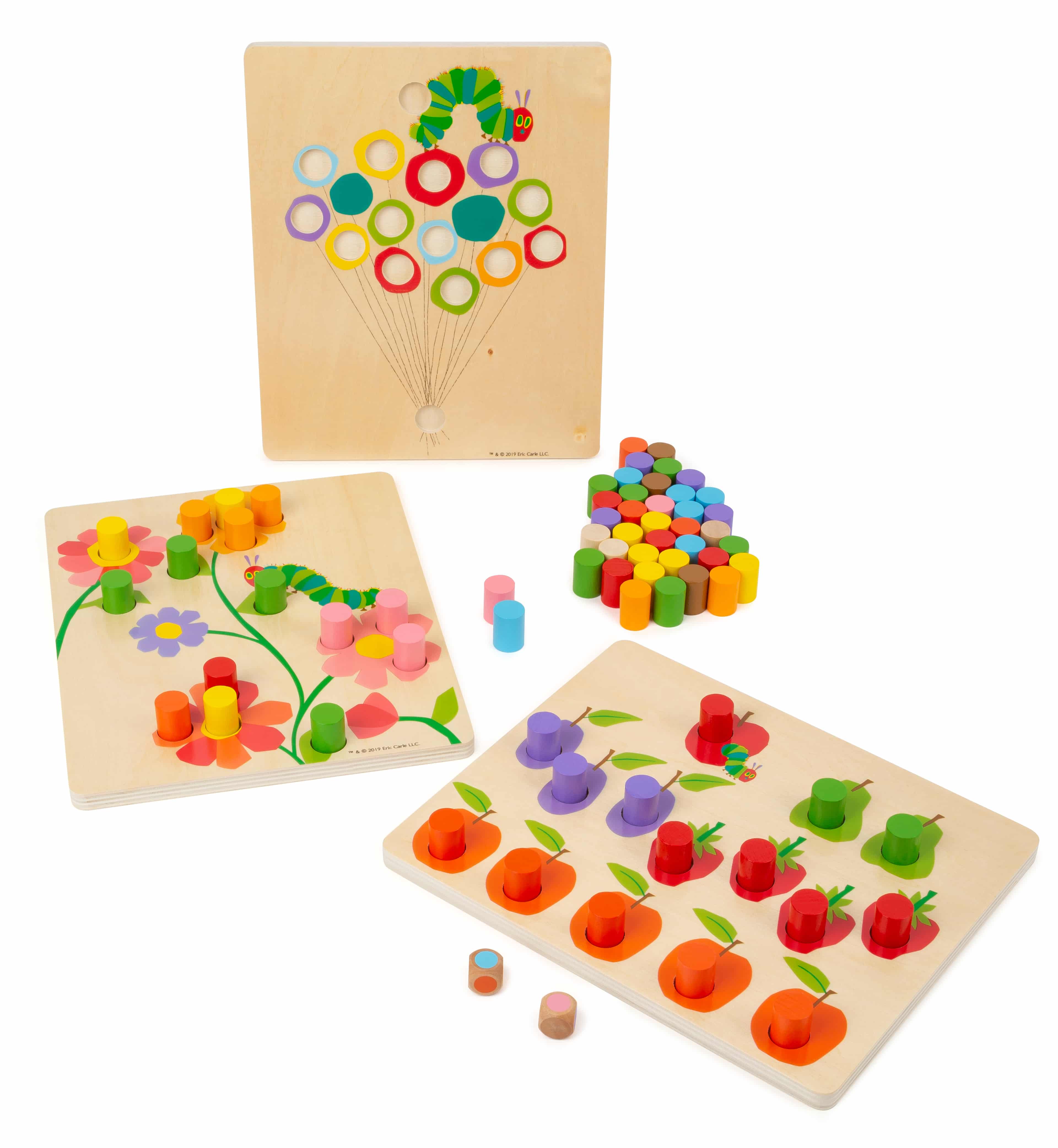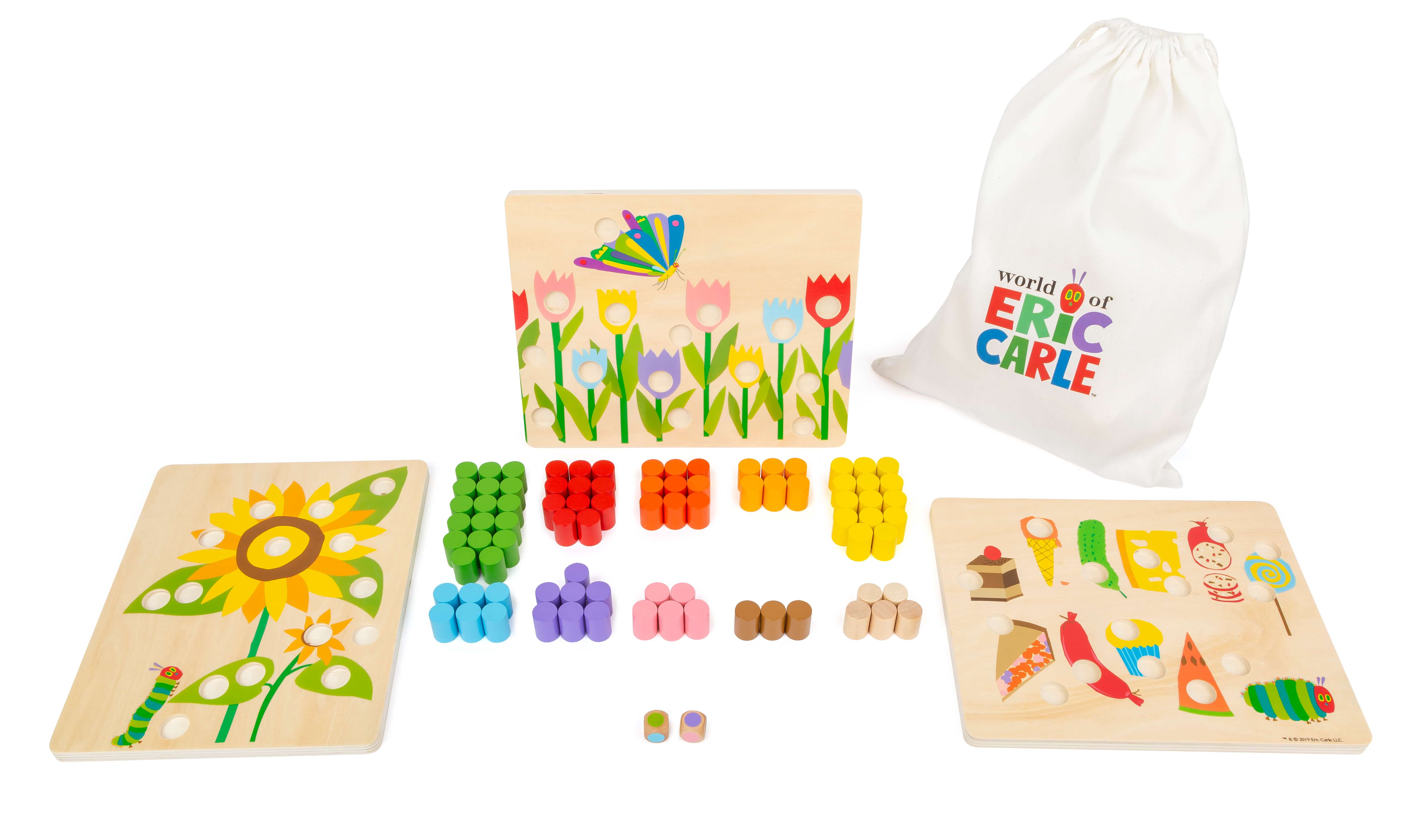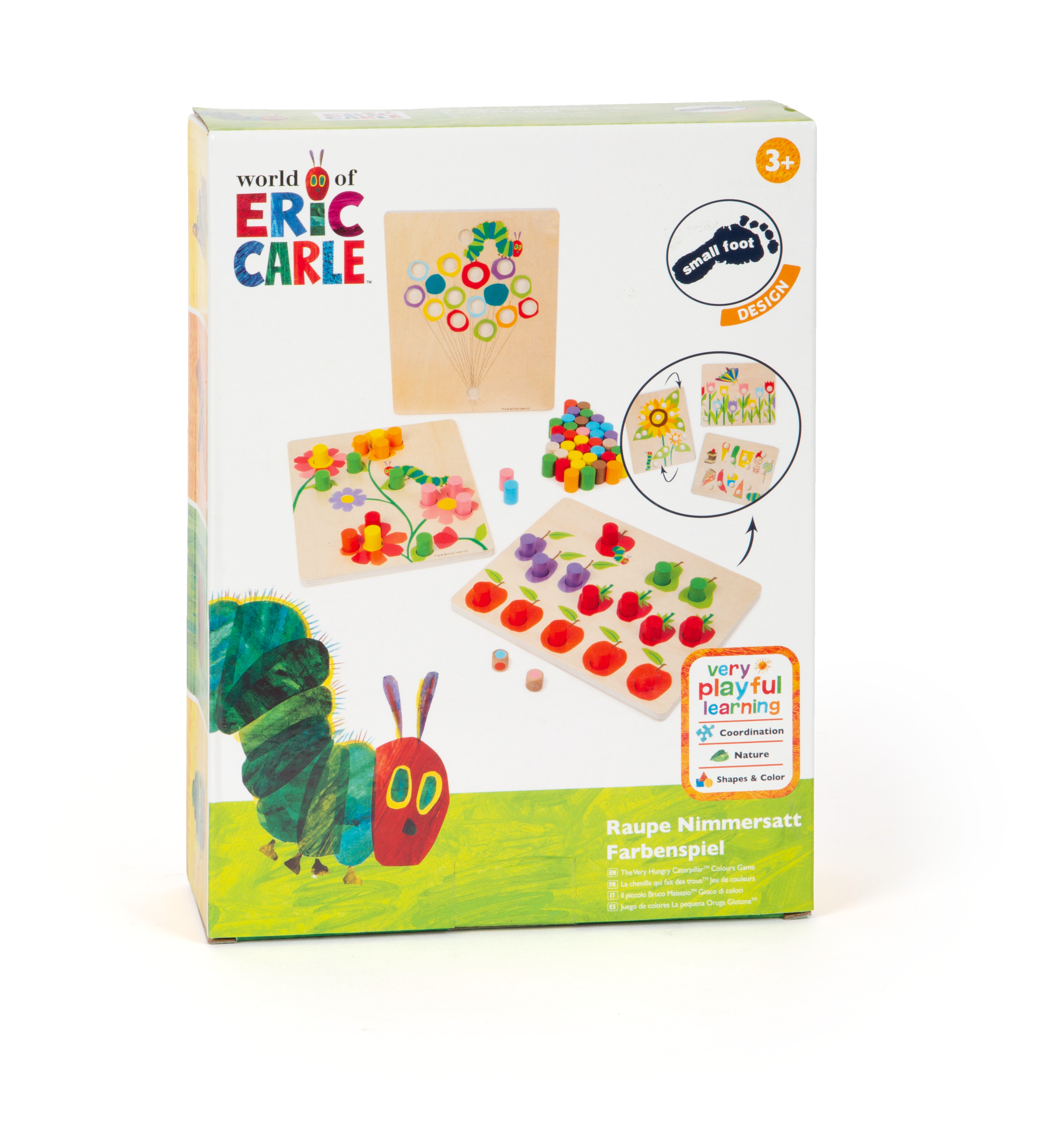 Mit diesem Farbsortierspiel lernen kleine Raupe Nimmersatt-Fans ganz spielerisch, Farben zu erkennen und zu ordnen. Sechs Bilder werden im Laufe des Spiels mit Hilfe eines Farbwürfels und den farbigen Spielsteinchen passend vervollständigt. Ein lehrreicher Spielspaß, der in zwei Varianten gespielt werden kann und neben der Farberkennung auch die Feinmotorik trainiert!