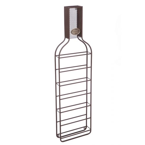 Das Weinregal Cork überzeugt mit seinem stilvollen Design und praktischer Funktionalität. Gefertigt aus braunem Metall, ist es in zwei Varianten erhältlich: eine rechteckige Ausführung mit Platz für 4 Weingläser und 7 Weinflaschen sowie eine Variante in Form einer Weinflasche, die bis zu 7 Weinflaschen fasst.