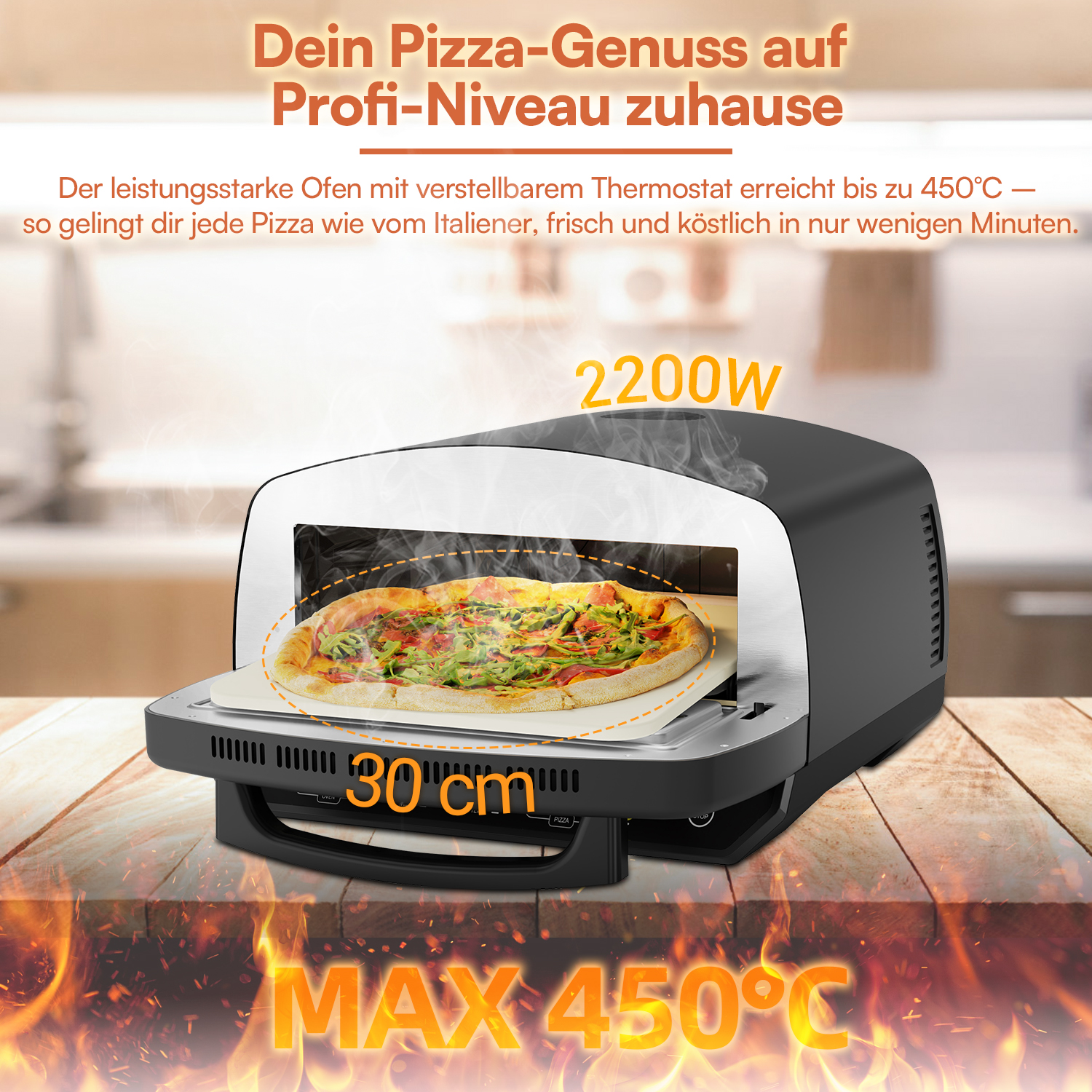 - Inklusive Pizzastein, Backblech und Pizza-Rack