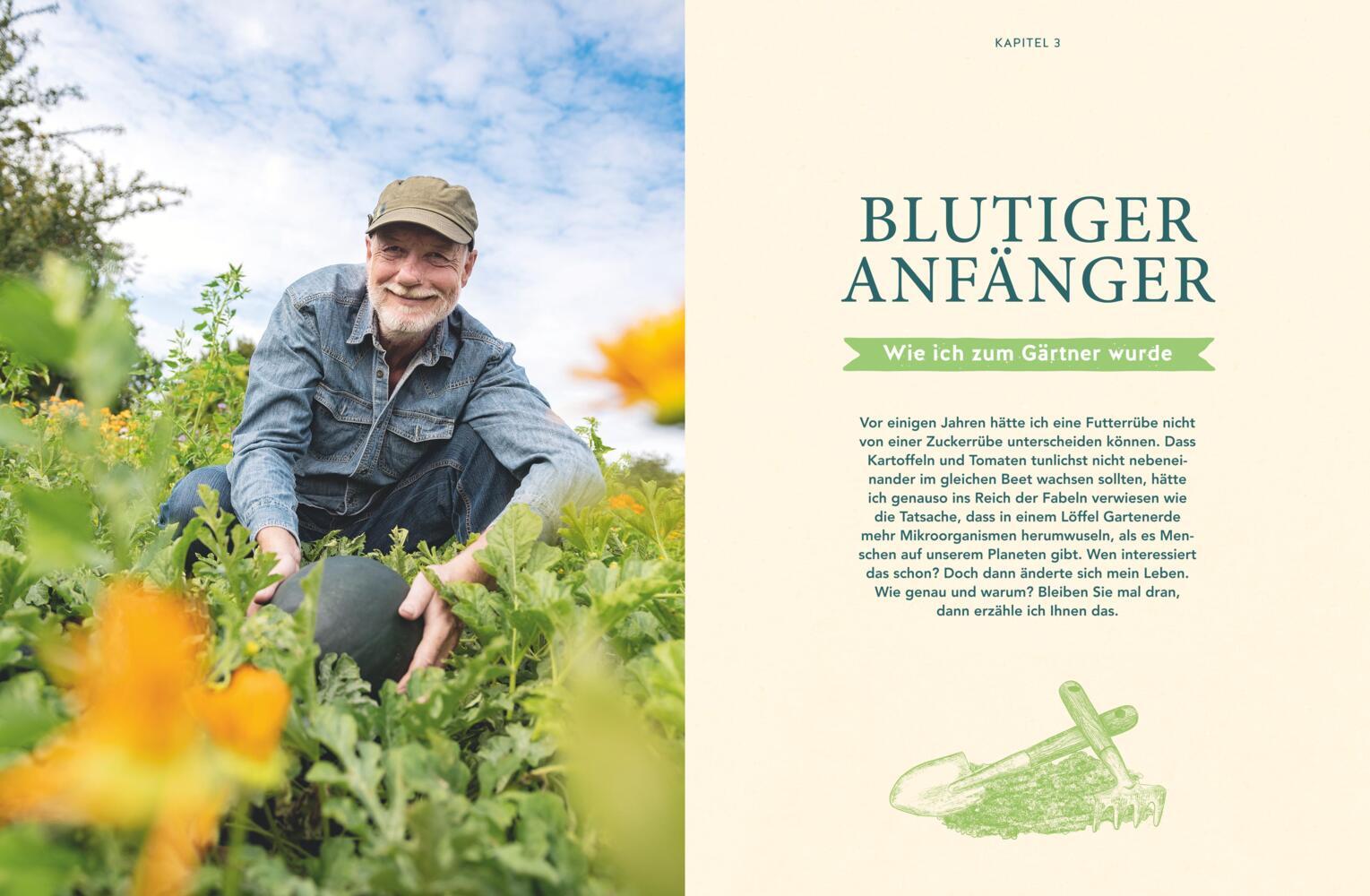 Hinweis zur OptimierungImpressumVorwortVon null auf Garten. Welcher Gartentyp sind Sie?Sag dem Supermarkt ade? Das ist für mich SelbstversorgungBlutiger Anfänger. Wie ich zum Gärtner wurdeDas wollen sie also auch? So geht SelbstversorgerAber bitte mit Sonne! Der neue GemüseackerEin kurzer Seitenblick nach unten. Der GartenbodenGärtners Gold. Mein KompostplatzNicht so nette Tierchen. Über SchädlingeMein Ständiger Begleiter. Was tun gegen Unkraut?Da ist doch was Faul! Mehltau & Co.Endlich Erde an den Fingern. Gemüse für AnfängerKleine Körnchen, Riesenthema! Saatgut – ein ExkursUnd ab damit in den Boden. Die DirektsaatErst mal in die Pötte kommen! Die VoranzuchtPflanzen haben Durst. Die BewässerungLieber nicht zu viel des Guten. Düngemittel im GartenDer Wald Als Vorbild. Mulchen, ein Allheilmittel?Kleine Trickkiste. Was bringen Hochbeete?Muskeln und Motorkraft. Meine wichtigsten GeräteBeste Freundinnen. Wie man Hühner hältMein Braten schnattert im Garten. Gänse und EntenGroße Schwärmerei. Bienen und HonigVon eigenen Ähren zehren. GetreideanbauMehr geht fast nicht. Trotzdem bin ich SelbstversorgerNachwortAdressen, die weiterhelfenBücher, die weiterhelfen
