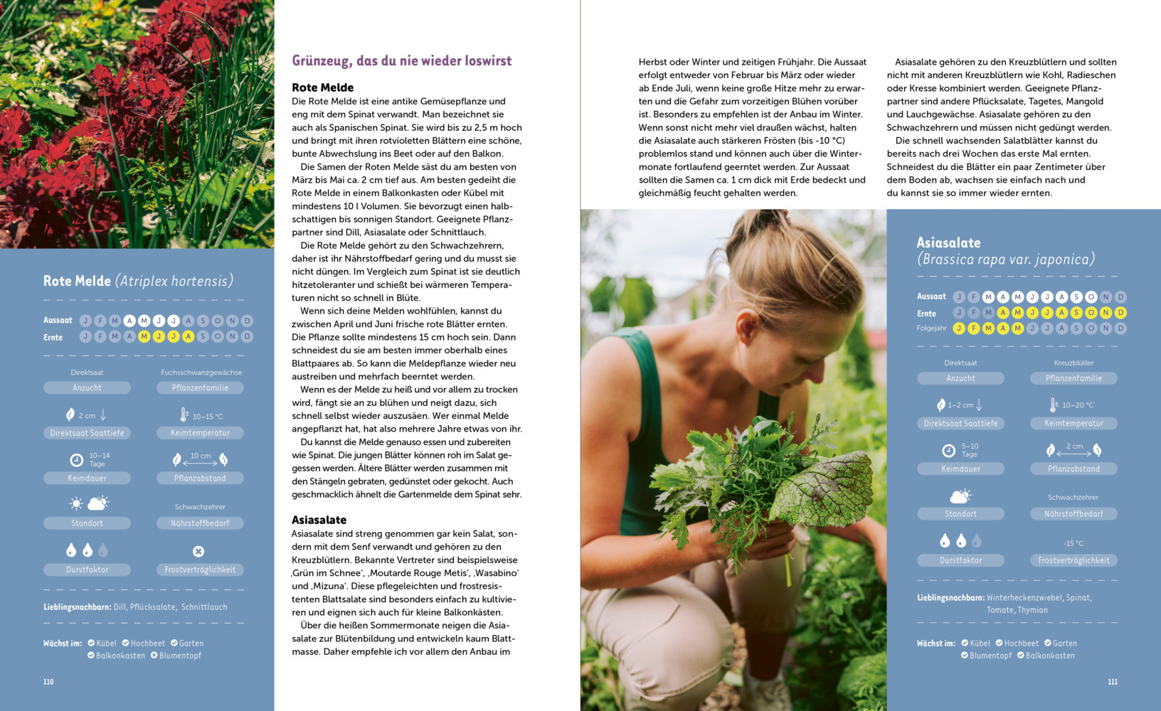 Dieses Buch versorgt dich mit super hilfreichen Basics und Pflanzanleitungen, einem ausführlichen Aussaat-, Pflanz- und Erntekalender, zahlreichen Beispielplanungen und einem modularen Pflanzbaukasten. Und weil jede Fläche und jede*r Gärtner*in anders ist, findest du auch noch unglaublich viele Ideen, wie du dir deinen Lieblingsgarten selbst zusammenstellst. Über 50 detaillierte Pflanzenportraits helfen dir dabei, genau die Gemüse, Früchte und Kräuter zu entdecken, die du anbauen möchtest und die zu dir passen.