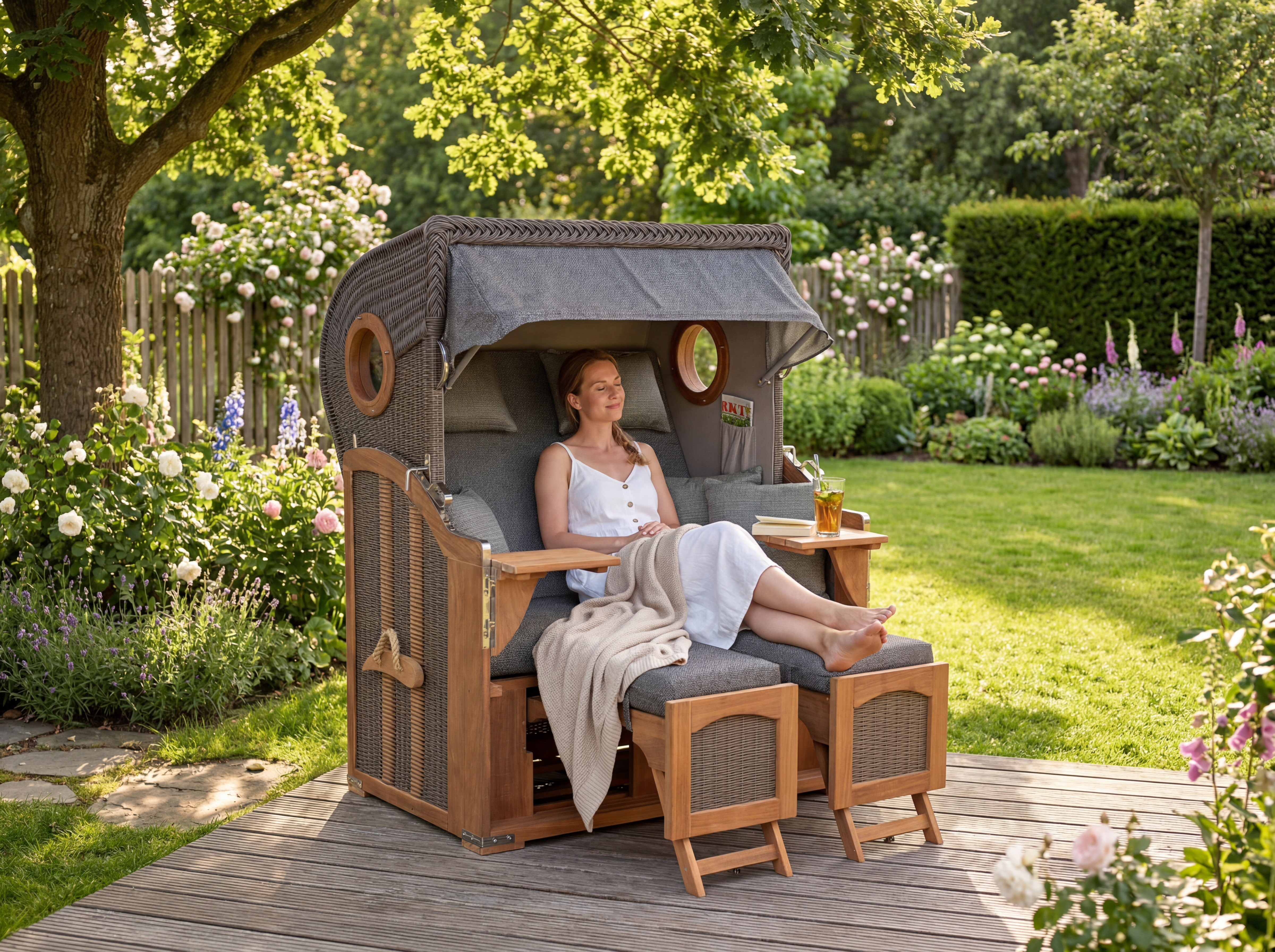 Strandkorb 2,5-Sitzer Komplettset | Teakholz – DÜNENKÖNIG XL