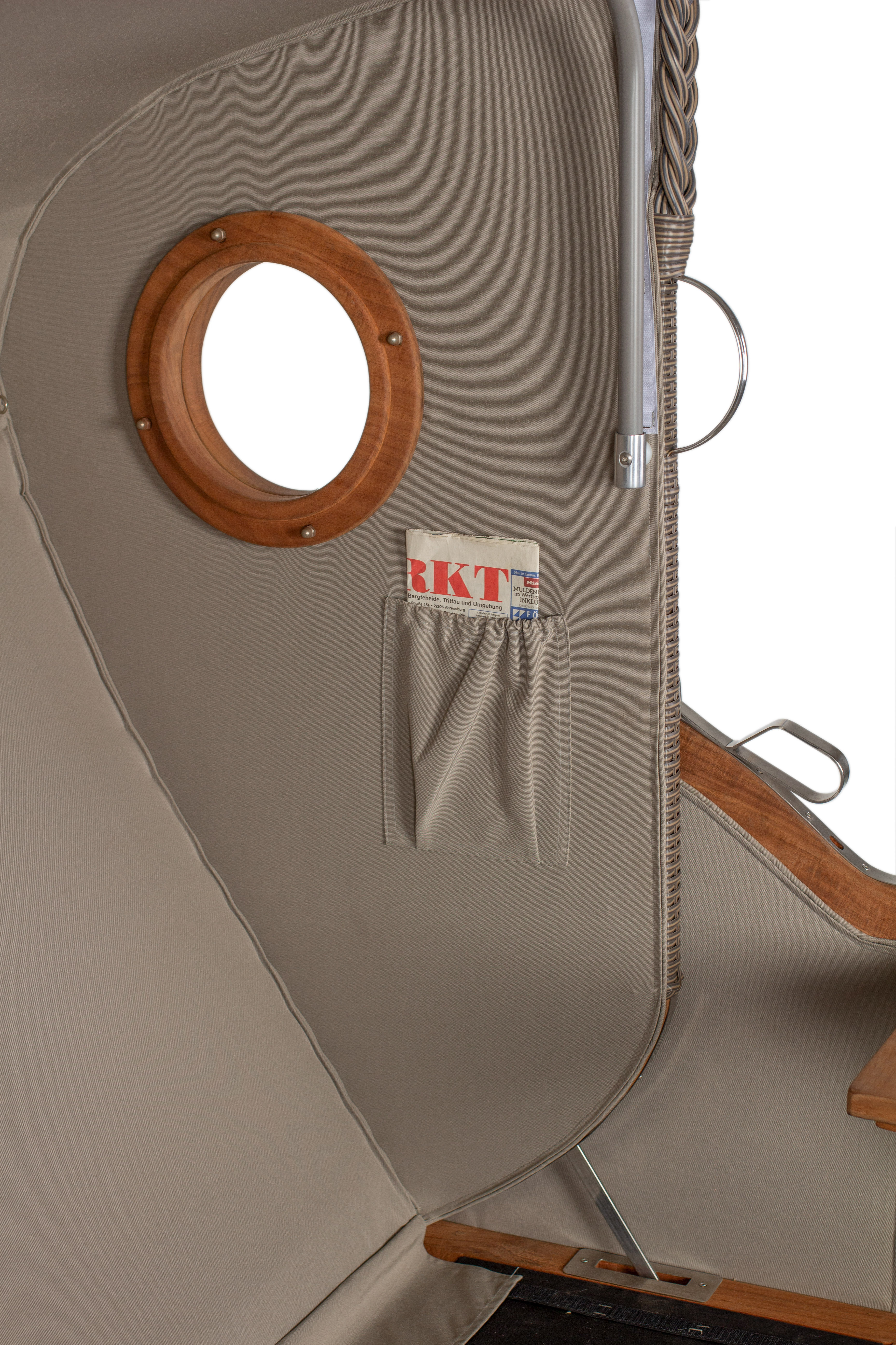 Zwei Bullaugen mit Rahmen aus Akazie lassen Licht herein und geben den klassischen Look.