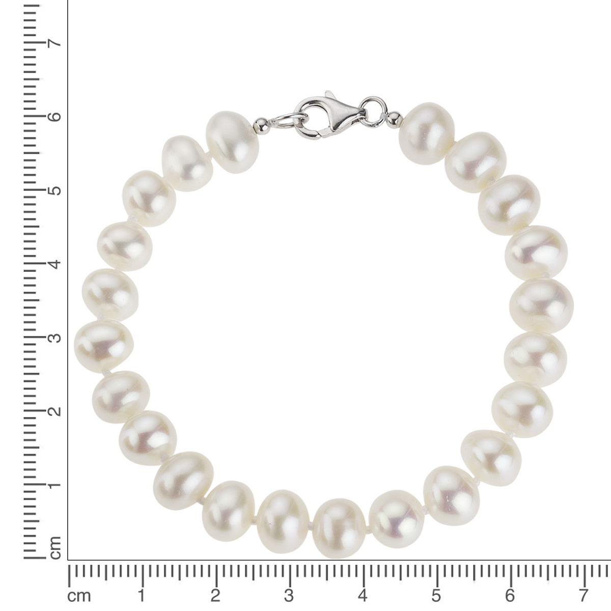 Dieses elegante Armband aus 925er Silber besticht durch seine zeitlose Schönheit und hochwertige Verarbeitung. Die edlen Süßwasserzuchtperlen, jede mit einem Durchmesser von 8 mm, verleihen dem Schmuckstück einen natürlichen Glanz und machen es zu einem besonderen Highlight für jeden Anlass. Mit einer Länge von 19 cm schmiegt sich das Armband sanft um das Handgelenk und sorgt für einen angenehmen Tragekomfort. Das Zusammenspiel aus schimmernden Perlen und hochwertigem Sterlingsilber verleiht dem Armband eine klassische Eleganz, die sowohl im Alltag als auch zu festlichen Anlässen überzeugt. Ein perfektes Accessoire für stilbewusste Damen.