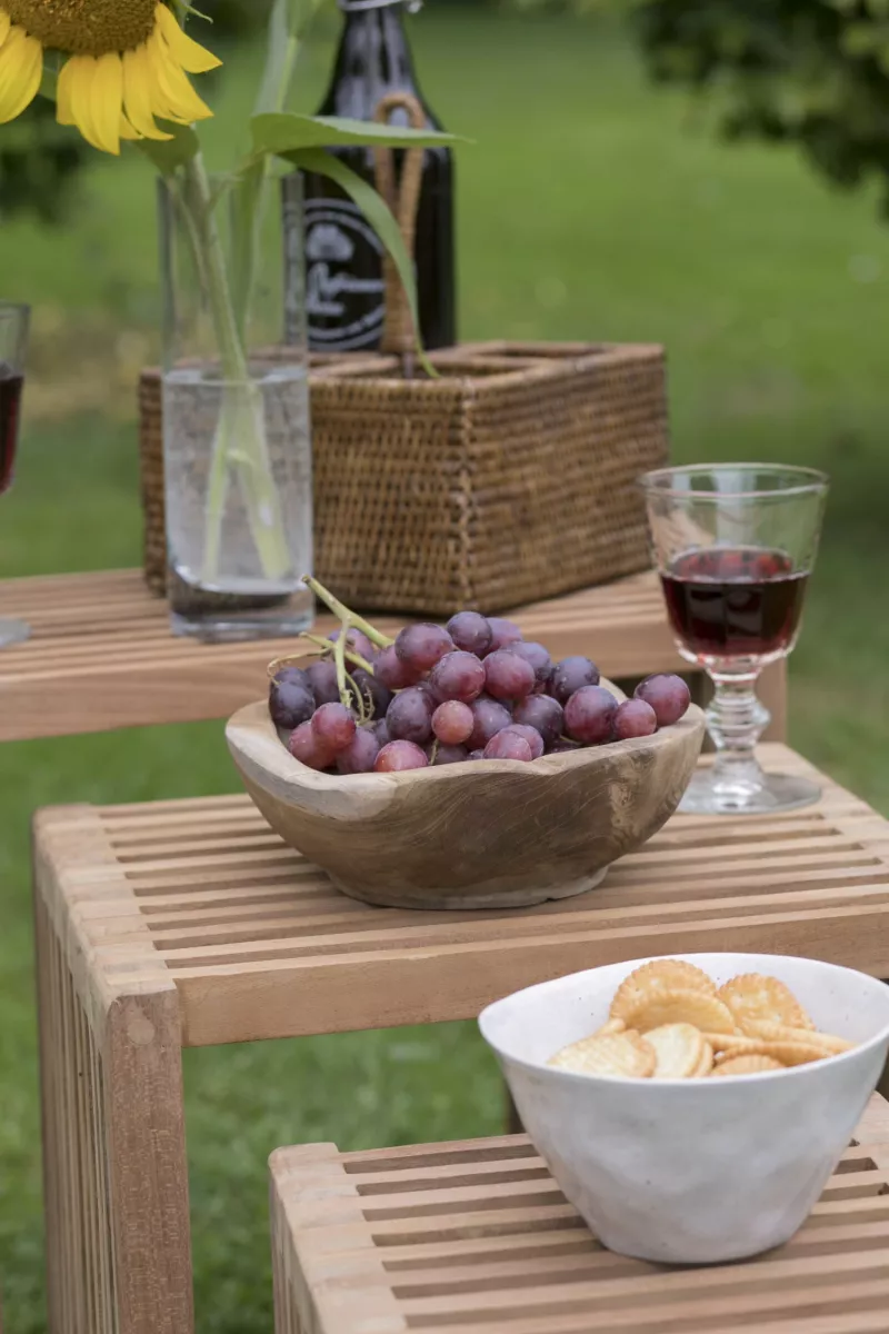 Die Beistelltische aus Teak kommen als praktische Ablage immer dann zum Einsatz, wenn man sie gerade benötigt.