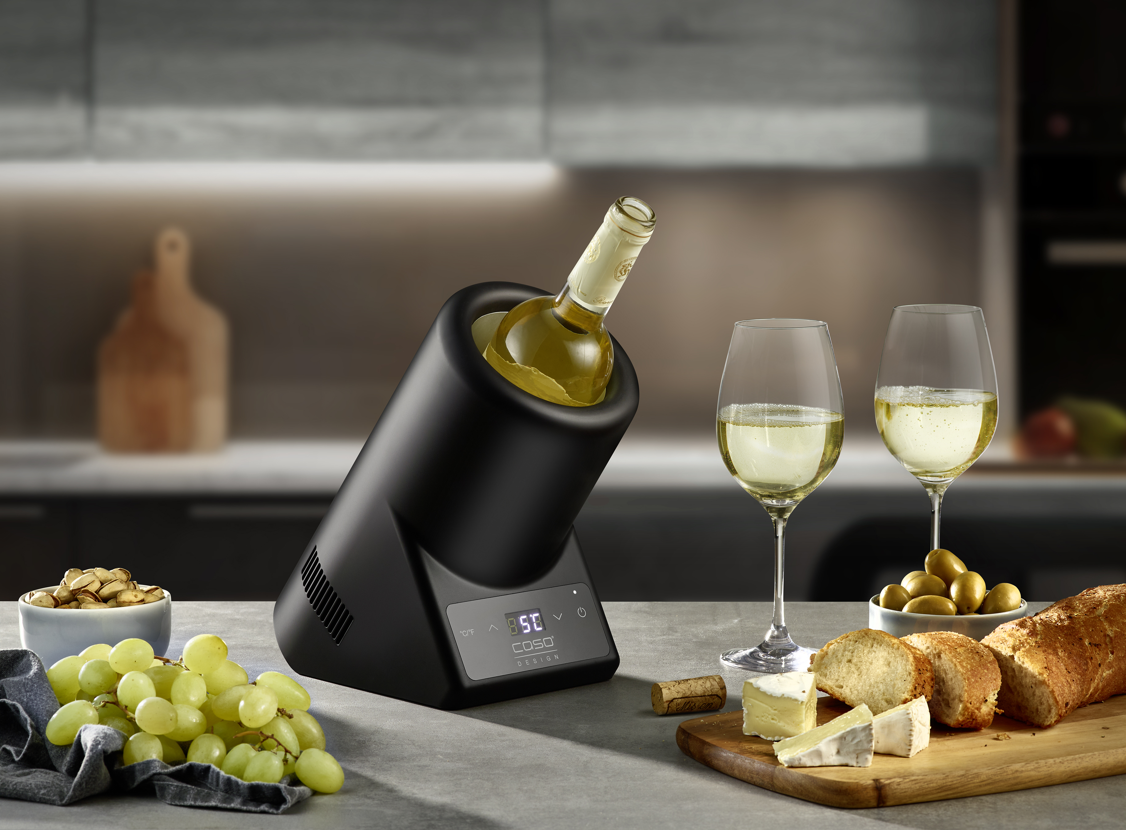 Dank der elektronischen Temperaturregelung können die gewünschte Kühltemperatur präzise zwischen 5 und 18°C in Schritten von einem Grad einstellen. Mit einem Flaschendurchmesser von bis zu 9 cm ist er perfekt für Weiß- und Rotwein geeignet.