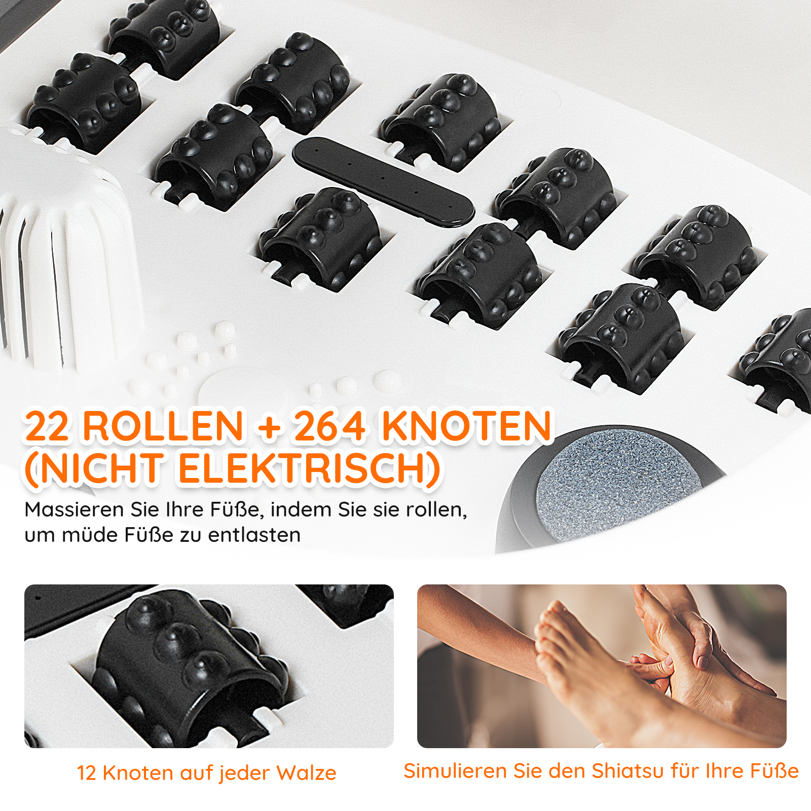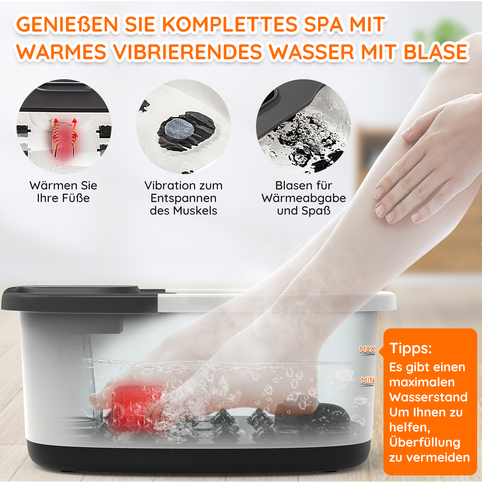 Verwandeln Sie Ihr Zuhause in eine Wohlfühloase und gönnen Sie Ihren Füßen die Pflege, die sie verdienen – mit diesem Fußmassagegerät für Wärme, Blasen und Entspannung.