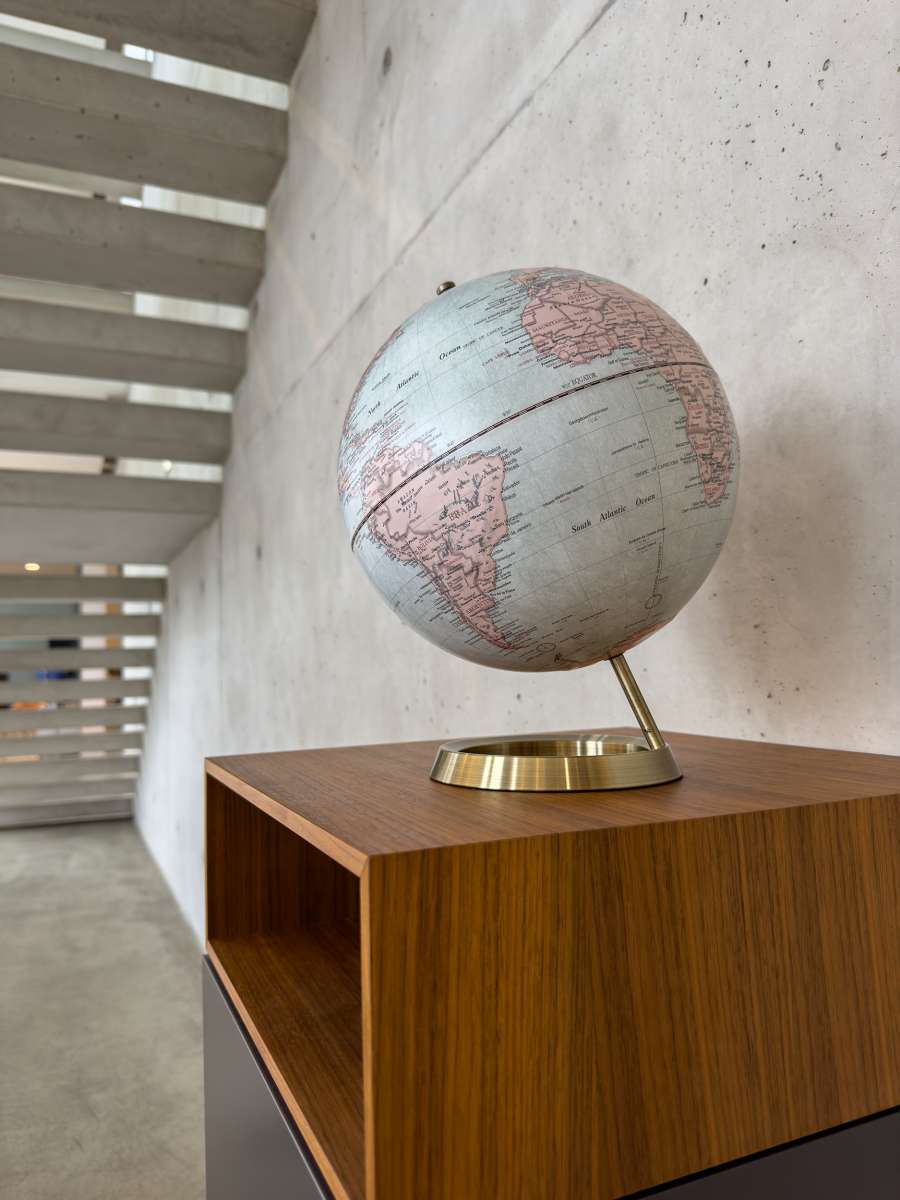 Der Globus hat eine Neigungsachse von 23,5 Grad – genau wie die Erde. Er ist detailgetreu gestaltet und besitzt einen Durchmesser von 25 cm. Mit seiner Reliefkarte, auf der Hauptstädte, Gebirge, Länder und Meere verzeichnet sind, und dem hochwertigen, verchromten Metallfuß ist er ein echter Blickfang für geographische Entdecker.