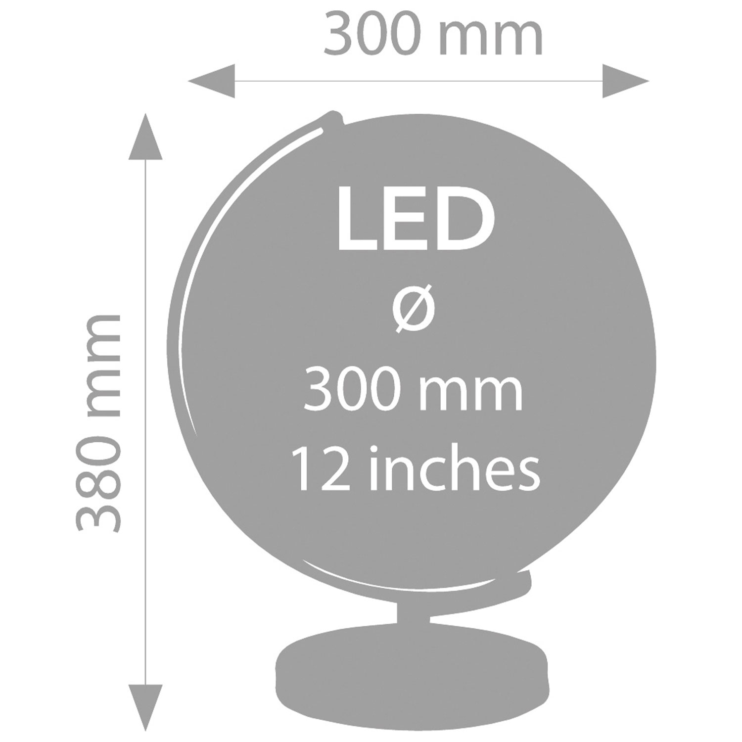 - Ansprechendes Design: Der glänzende LED-Globus Stellar Light mit einem Durchmesser von 30 Zentimetern zeigt ein beleuchtetes Kartenbild. Präzise in englischer Sprache beschriftet, veranschaulicht er Kontinente, Länder, Ozeane, geografische Zonen, wichtige Städte und Gebirge.