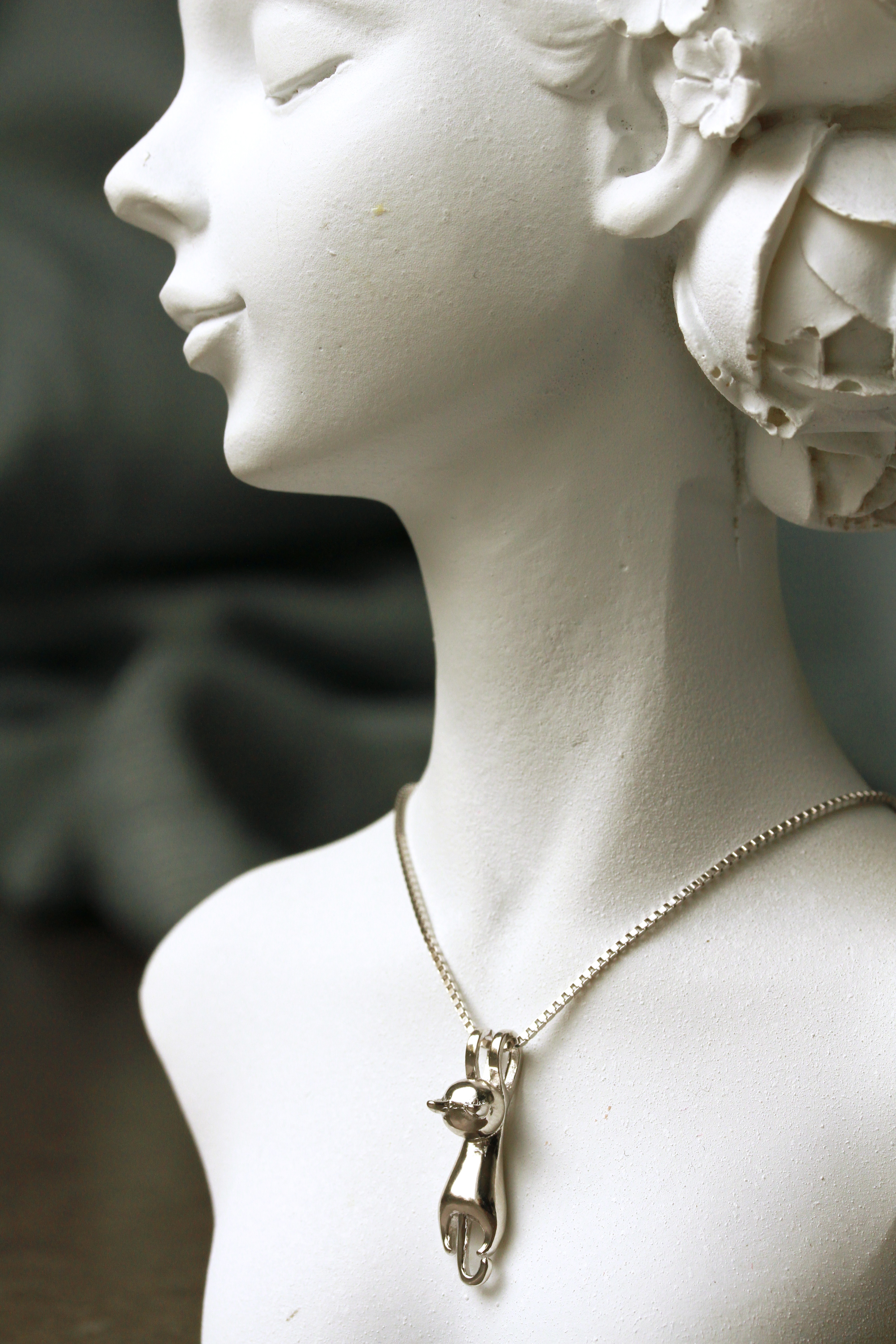 Ein sehr niedliches Geschenk, nicht nur für Katzenfreunde. Beide Elemente sind zu 100% aus Sterling Silber gearbeitet.