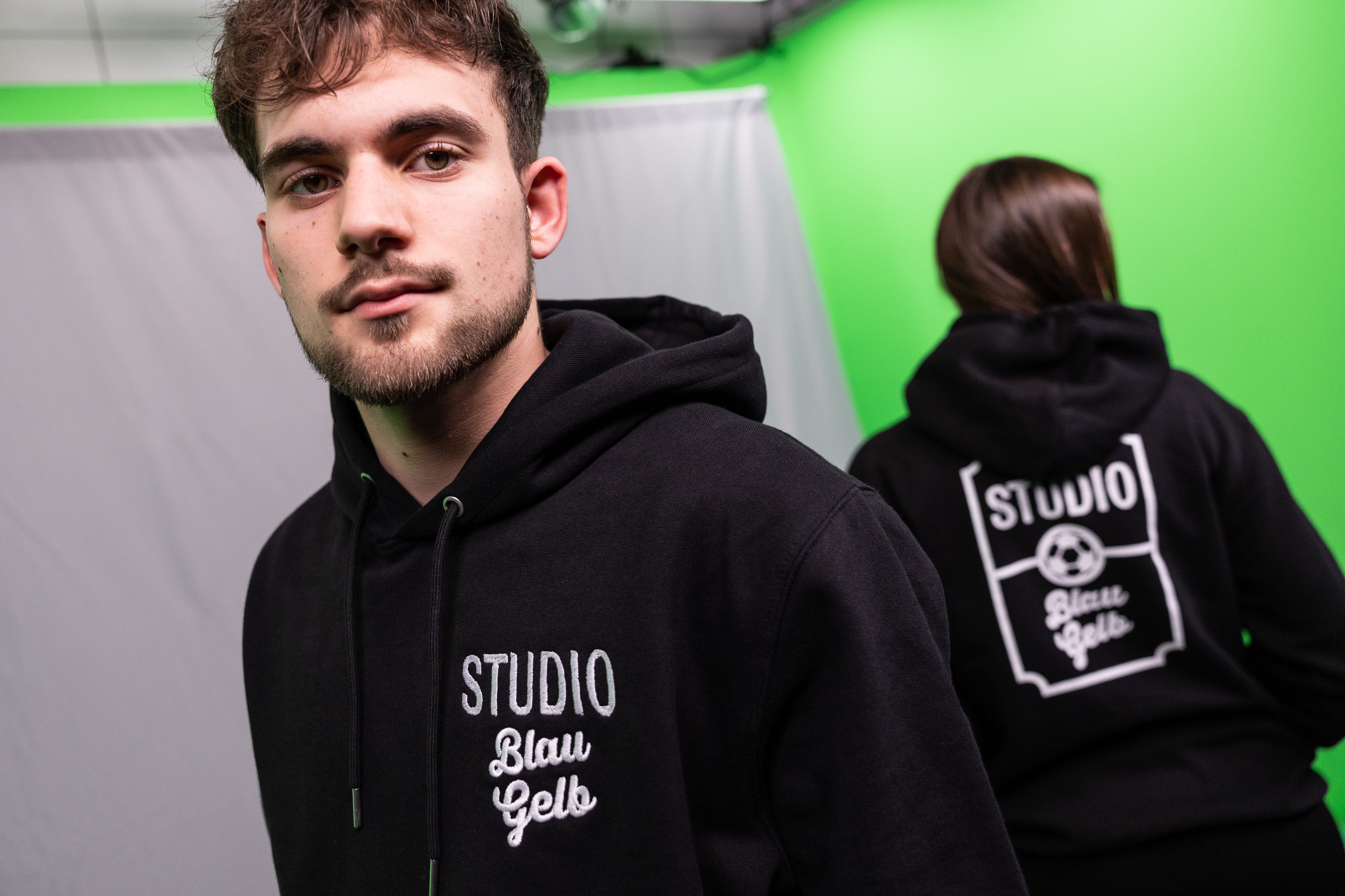Hoodie unisex gestickt - Studio Blau-Gelb