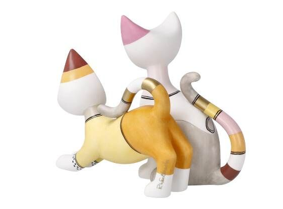 Dekorative Katzenfigur aus hochwertigem Biskuitporzellan, inspiriert von der einzigartigen Bildsprache der Künstlerin Rosina Wachtmeister. „Sara e Sereno“ zeigt zwei stilisierte Katzen in harmonischer Pose – liebevoll gestaltet und reich an detailreichen Elementen.