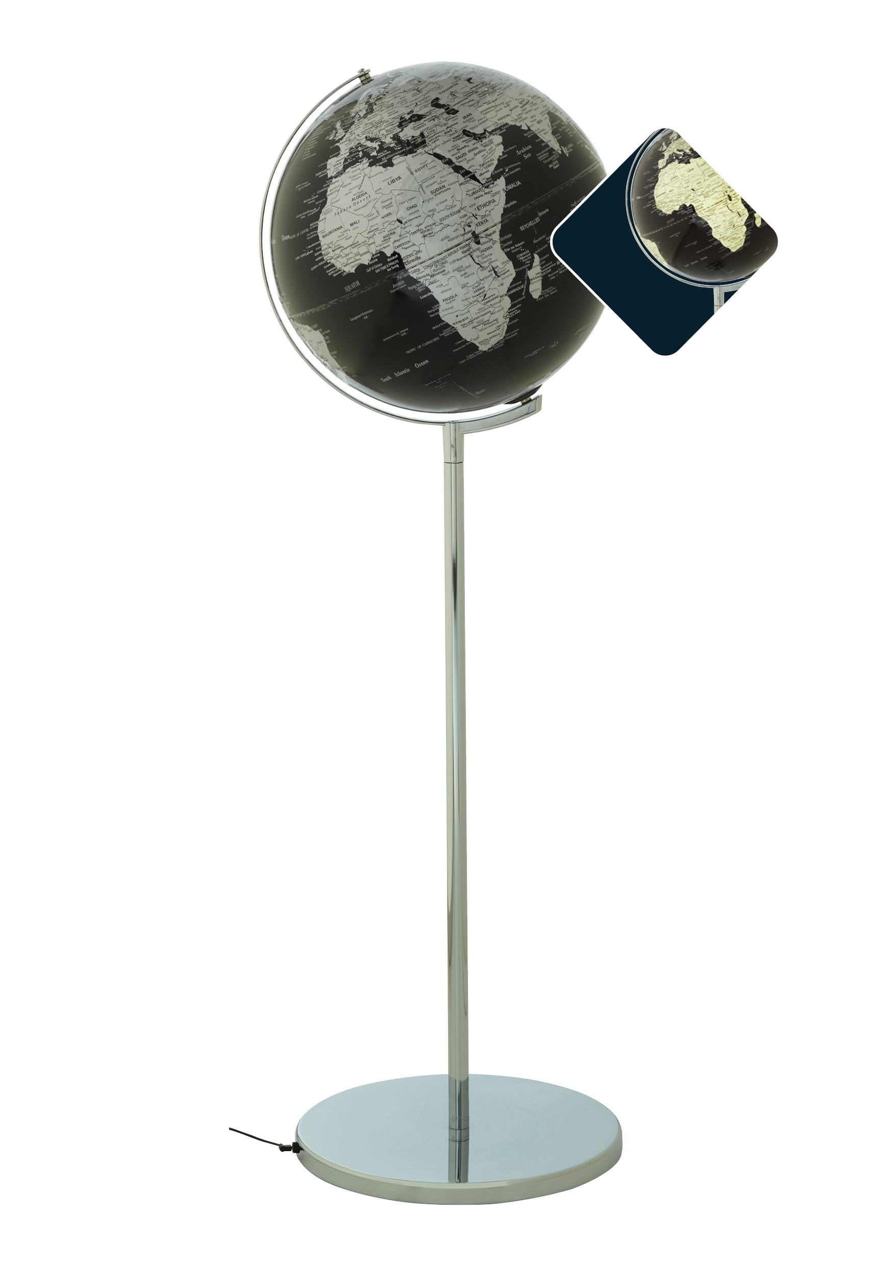 Mit seinem eleganten Design und integrierter LED-Beleuchtung ist der Standglobus SOJUS LIGHT ein beeindruckender Blickfang sowohl für private Wohnräume als auch für Geschäftsumgebungen. Der stabile Fuß, das verchromte Metallgestell und die glänzende Weltkugel mit ihren reliefartig ausgearbeiteten Gebirgen verkörpern höchste Exklusivität.