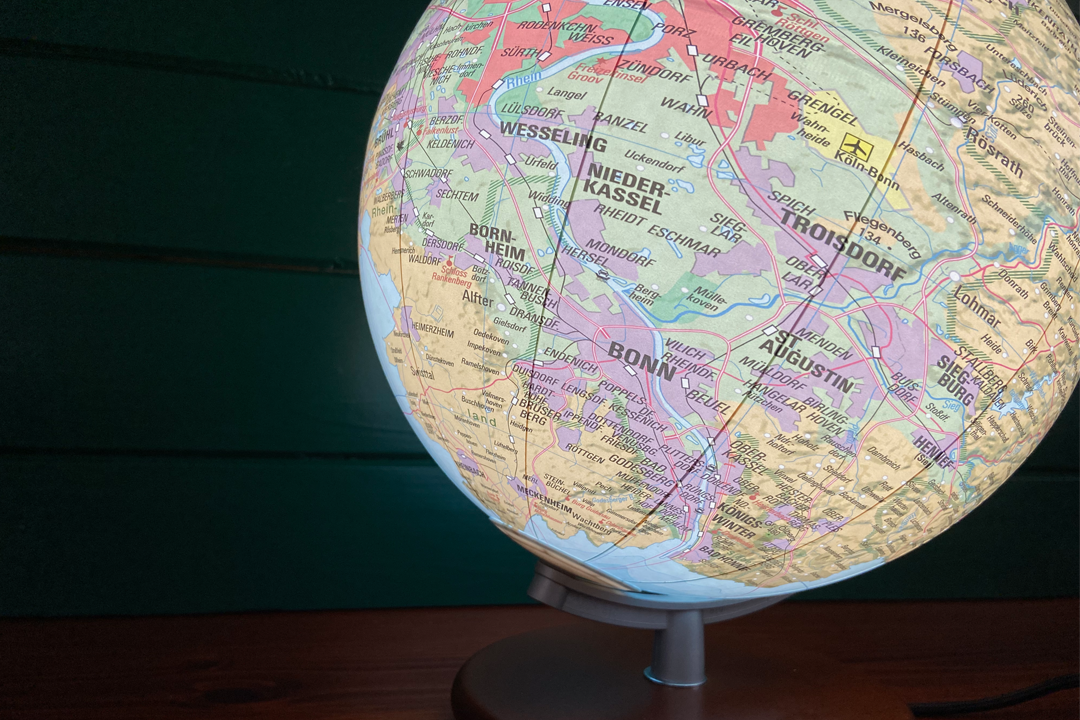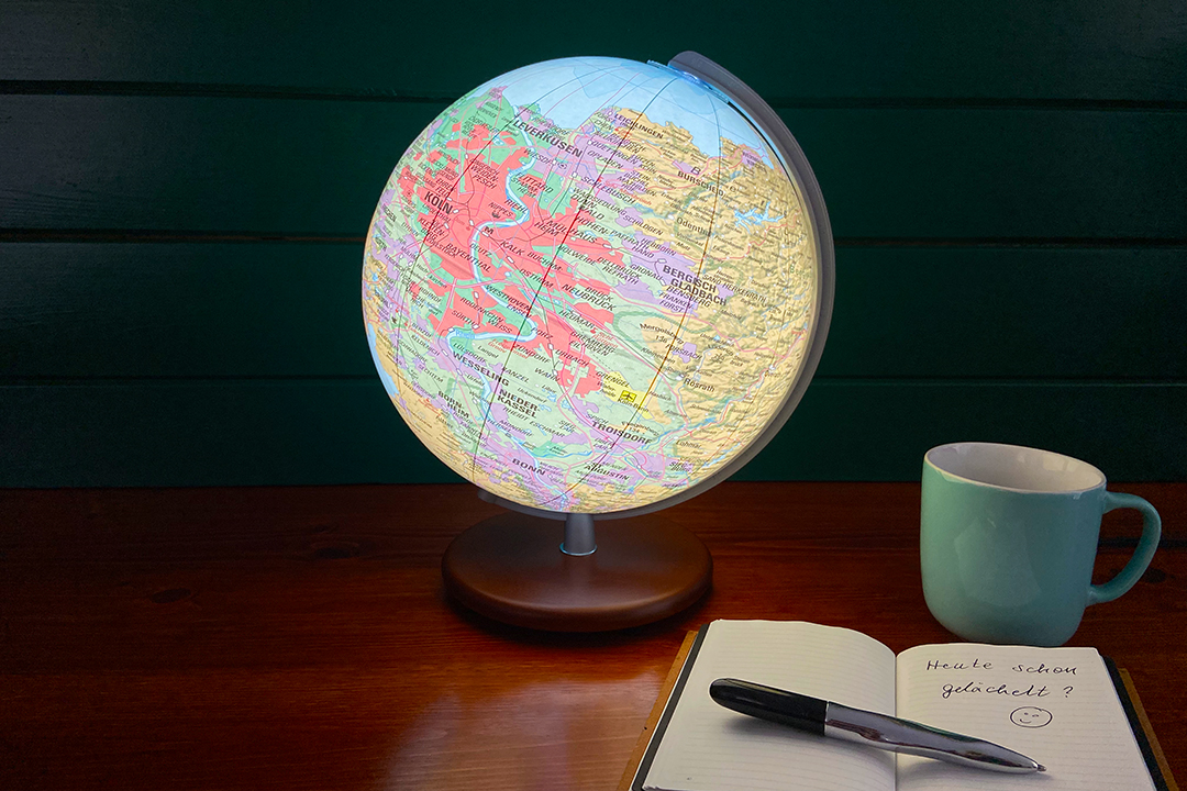 "Tünn“ ist mehr als nur ein Globus – er ist ein leuchtendes Statement für die Region Köln-Bonn und das angrenzende Bergische Land. Mit seiner 26 cm großen, handkaschierten Globuskugel zeigt er die landschaftliche Vielfalt und die städtische Dynamik einer der spannendsten Regionen Deutschlands.