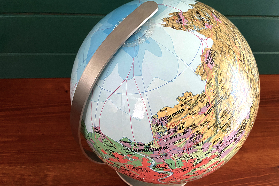 "Jupp“ ist ein Globus der Extraklasse – für alle, die ihrer Heimat ein besonderes Denkmal setzen wollen. Die hochwertige Karte auf der 30 cm großen Acrylglaskugel zeigt die Region Köln-Bonn und das Bergische Land mit beeindruckender Detailtreue: von pulsierenden Städten wie Köln, Bonn und Leverkusen bis hin zu charmanten Orten wie Gummersbach oder Kerpen.