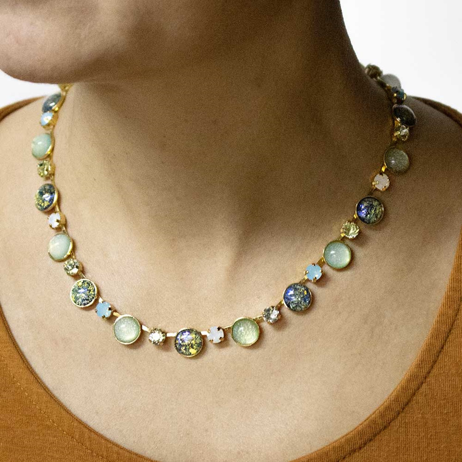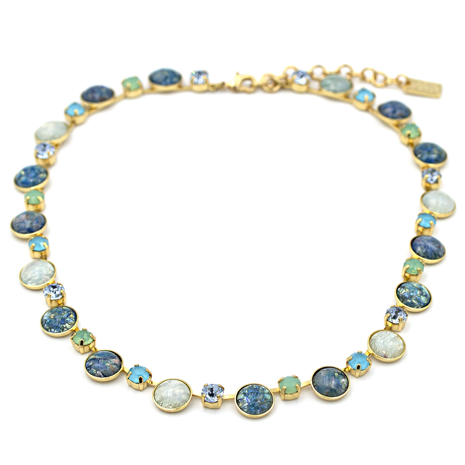 Entdecken Sie jetzt unser Collier mit Böhmischen Glascabouchons in einem Mix mit edlen Kristallen.